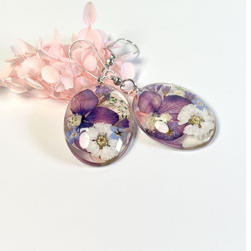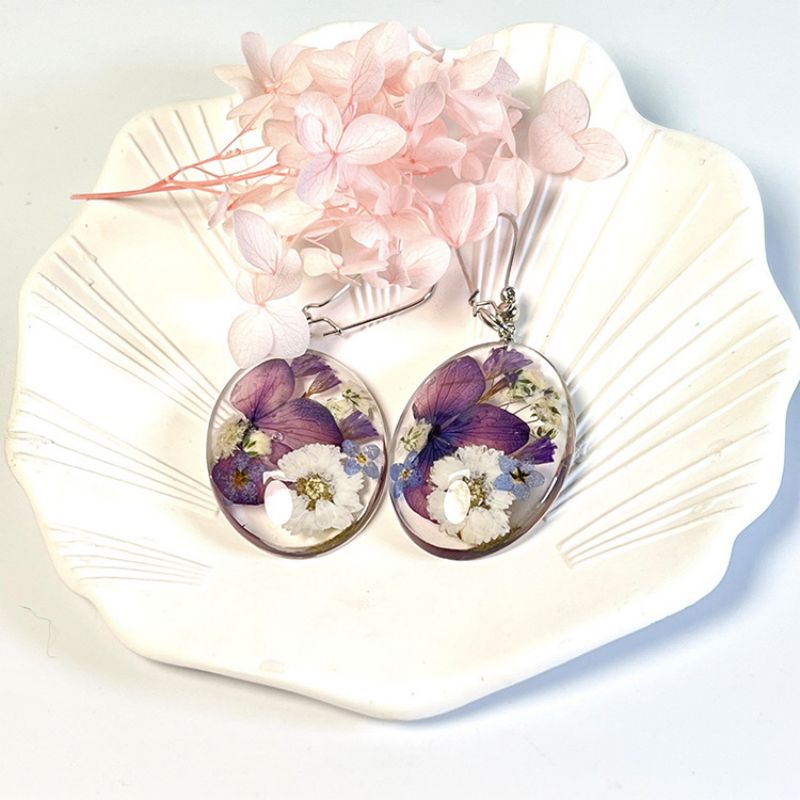Handmade Unique Dried Natural Flower Resin Earring