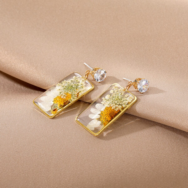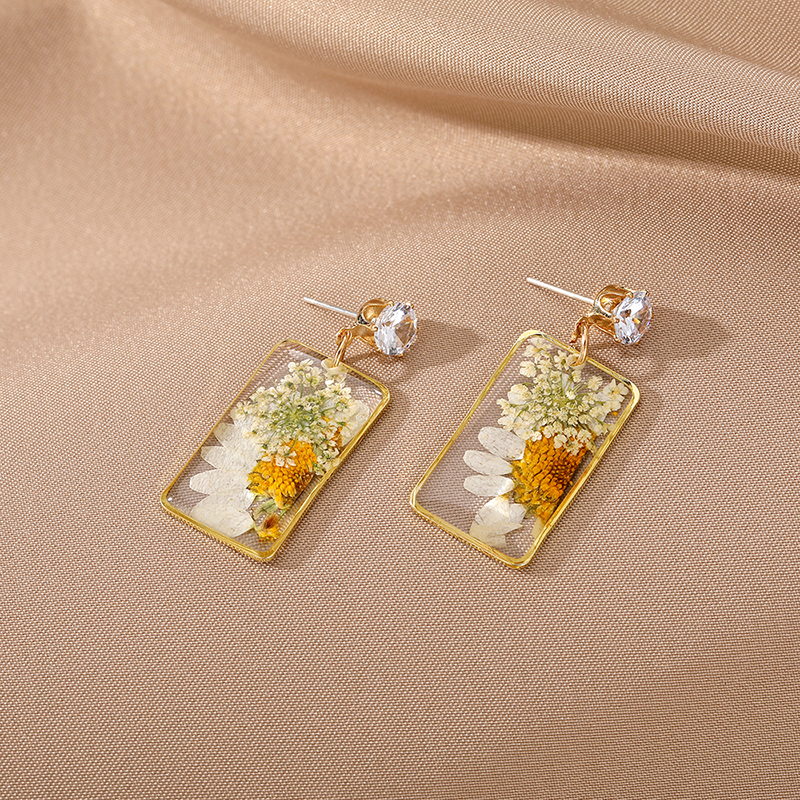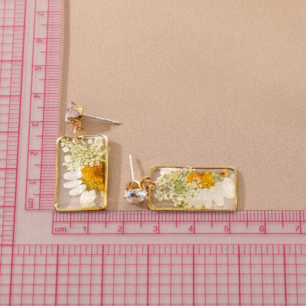 Rectangular Daisy Dried Flower Plant Drop Resin Epoxy Earrings